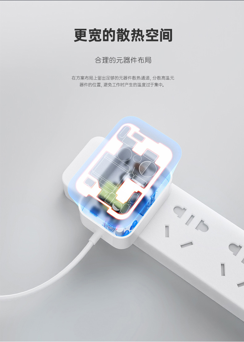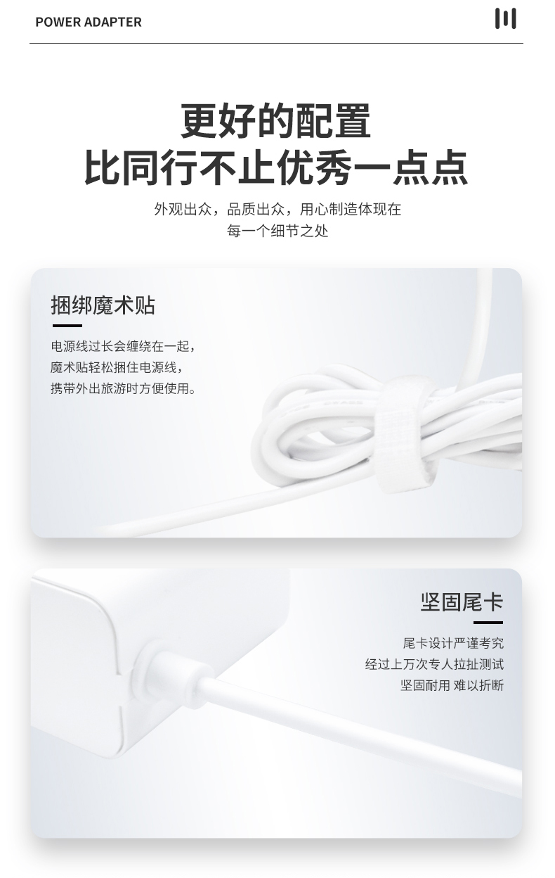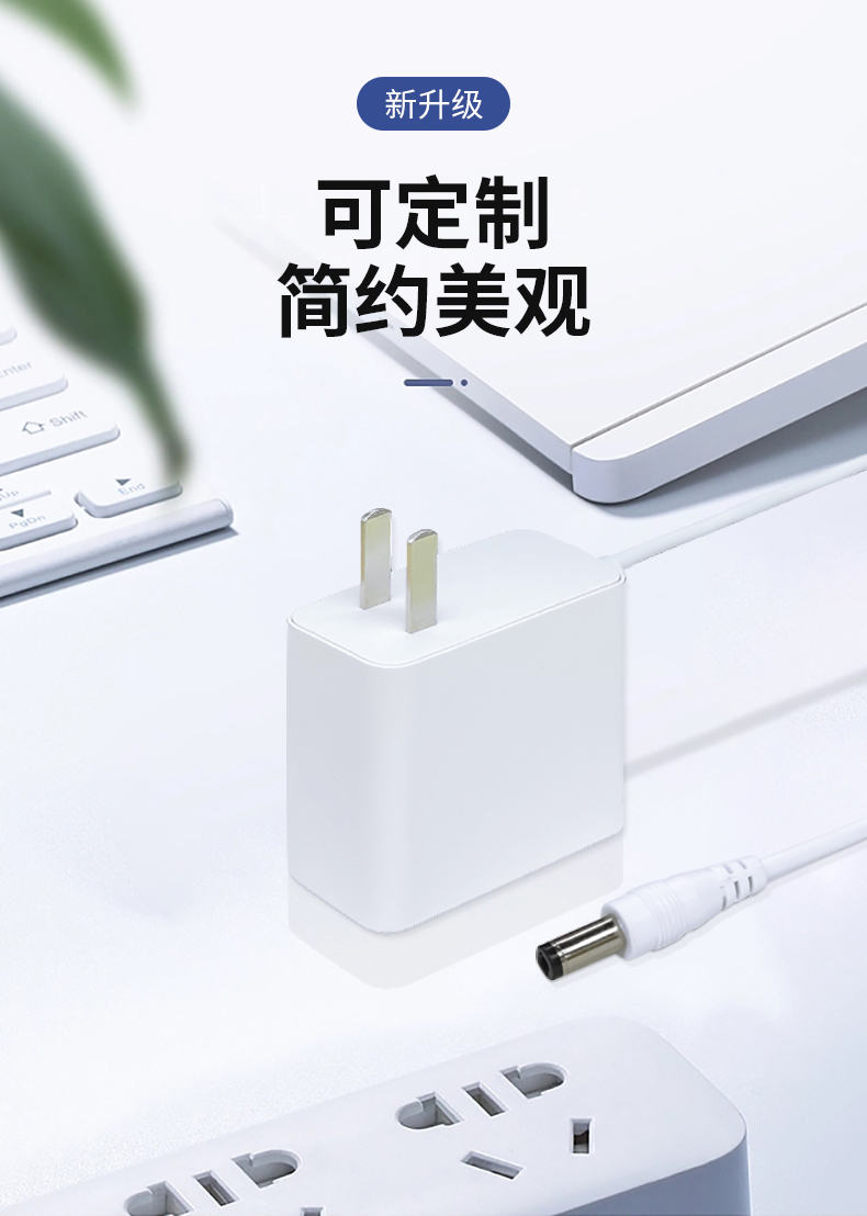 此款电源适配器采用简约、流线型的设计风格,外观简单美观,线条流畅,符合现代审美。